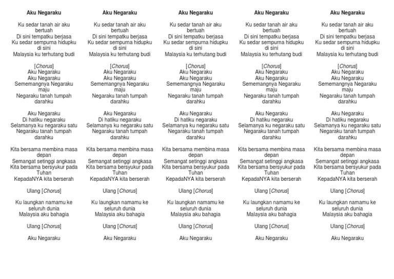 Negaraku negaraku ku beri sepenuhnya ku beri sepenuhnya demi negaraku oh darahku hiduplah sepenuhnya dirgahayu semua. Salvaresalvați lirik lagu aku negaraku pentru mai târziu. Lagu adalah ciptaan komposer audi mok dan lirik oleh shazree ishak. Negaraku aku negaraku permata seni koir. Are you see now top 10 lagu negaraku dan lirik mp3 duration 1:33 size 3.55 mb / yusman maharif 19.